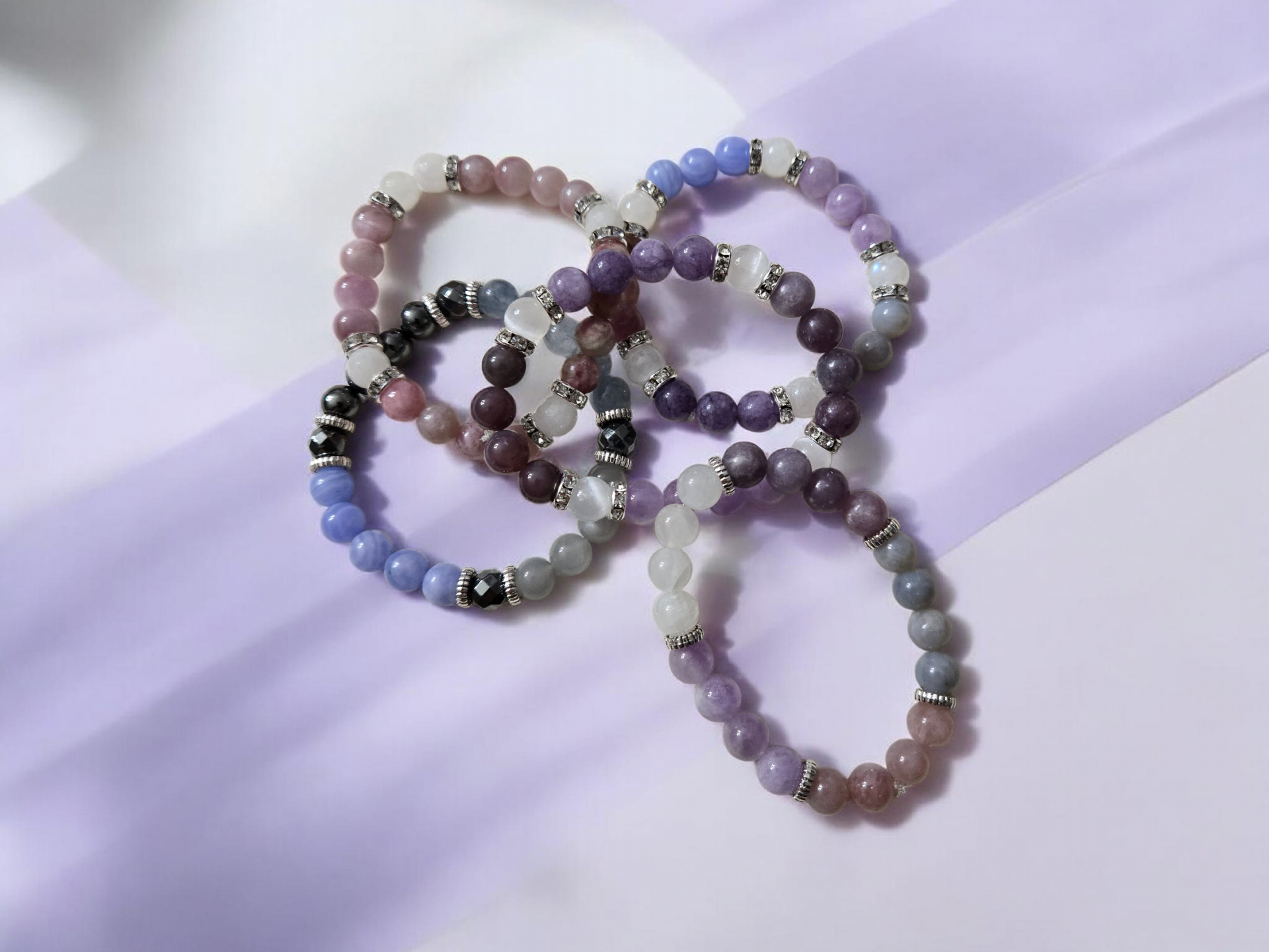 Our collection of custom-made crystal bracelets offers a unique blend of beauty and healing properties, designed to resonate with your individual style and needs.